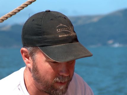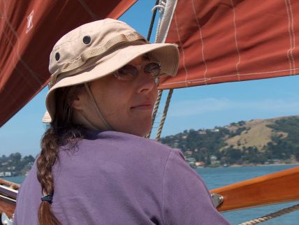 | Hayden has been sailing since childhood. Here, he looks up at the sheets, seeking a course that fills them. In the foreground, you see more of the beautiful wood that is Aldebaran's skin and bones. |