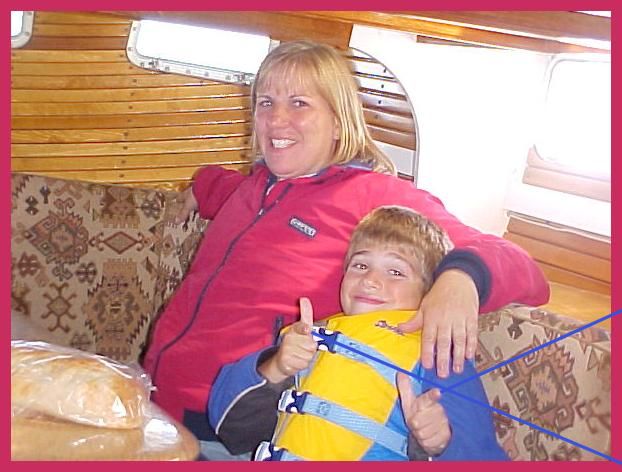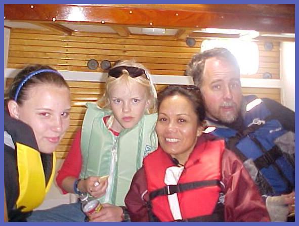 Bob hugs the youngest person on the boat, a lovely young lady that might be named Mariel. |