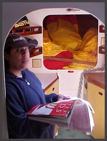 | I can't for the life of me remember a single name of a single woman except Nancy! Nancy is great, she is always interested in what you're doing, handing you cucumbers for your sandwich, telling funny stories, and then feeding you some more. Everyone has an X-power, you know, like the X-men? Nancy's seems to be that her cooler of food never slides on the table, no matter how rolling the salon gets. The young man's X-power is shooting blue laser beams from his fingers. |