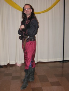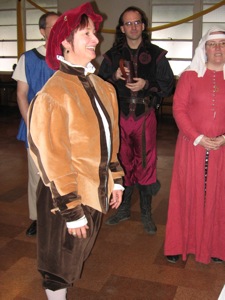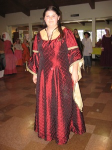Kathleen/Agnes made this cotehardie. 17 buttons on each sleeve.